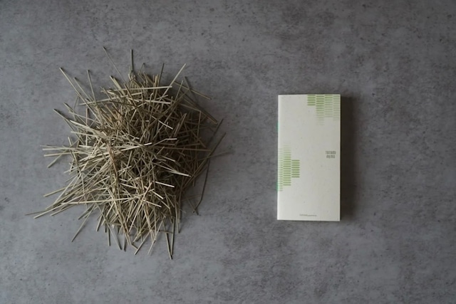 このメモ、なんと畳に使われる「藺草(いぐさ)」が漉き込まれた和紙でつくられています。 畳をつくる工程で本来、廃棄されてしまう藺草からつくることができたメモ帳です。 まるで、藺草の香りが漂ってくるような、優しい緑がほんのり映える自然な色合いの紙ができました。 視覚的にも安らぎを与えるような緑が「書く時間」をより心の落ち着いた時間にします。 また、万年筆との相性も抜群で、にじみやすい水性のインクでも裏抜けせず、滑らかな書き心地です。 真っ白ではなく、自然な風合いが特徴の紙なので、どんな色でも馴染みが良く、書くことでワクワクすること間違いなしです!! TATAMI MEMOは実際の畳サイズの比率と同じ。 書きやすい、ポケットの出し入れもしやすい、いつでもスッと出せてサッと書ける… それらを追求した結果、「畳の比率」に行きつきました。 畳の比率は2:1(丈:幅)。 それに合わせて作ったところ、絶妙に使いやすいメモができました!!デザインも畳を彷彿としてもらいたい想いから、畳の素朴で落ち着く色合いと、畳の目をイメージしたデザインで人の目を引き付ける素敵なメモに仕上がりました。 【メモ帳仕様】 サイズ : W70×H140 、ページ数 : 40ページ 用紙 : (表紙)藺草和紙 230g/m2厚 (本文)藺草和紙 81.4g/m2厚 製本 : 色こより綴じ 表紙デザイン:MITOLE DESIGN(ミトレデザイン)製作